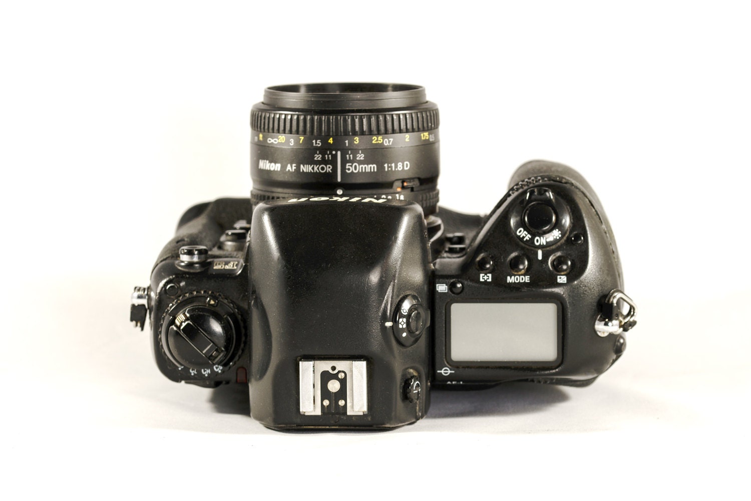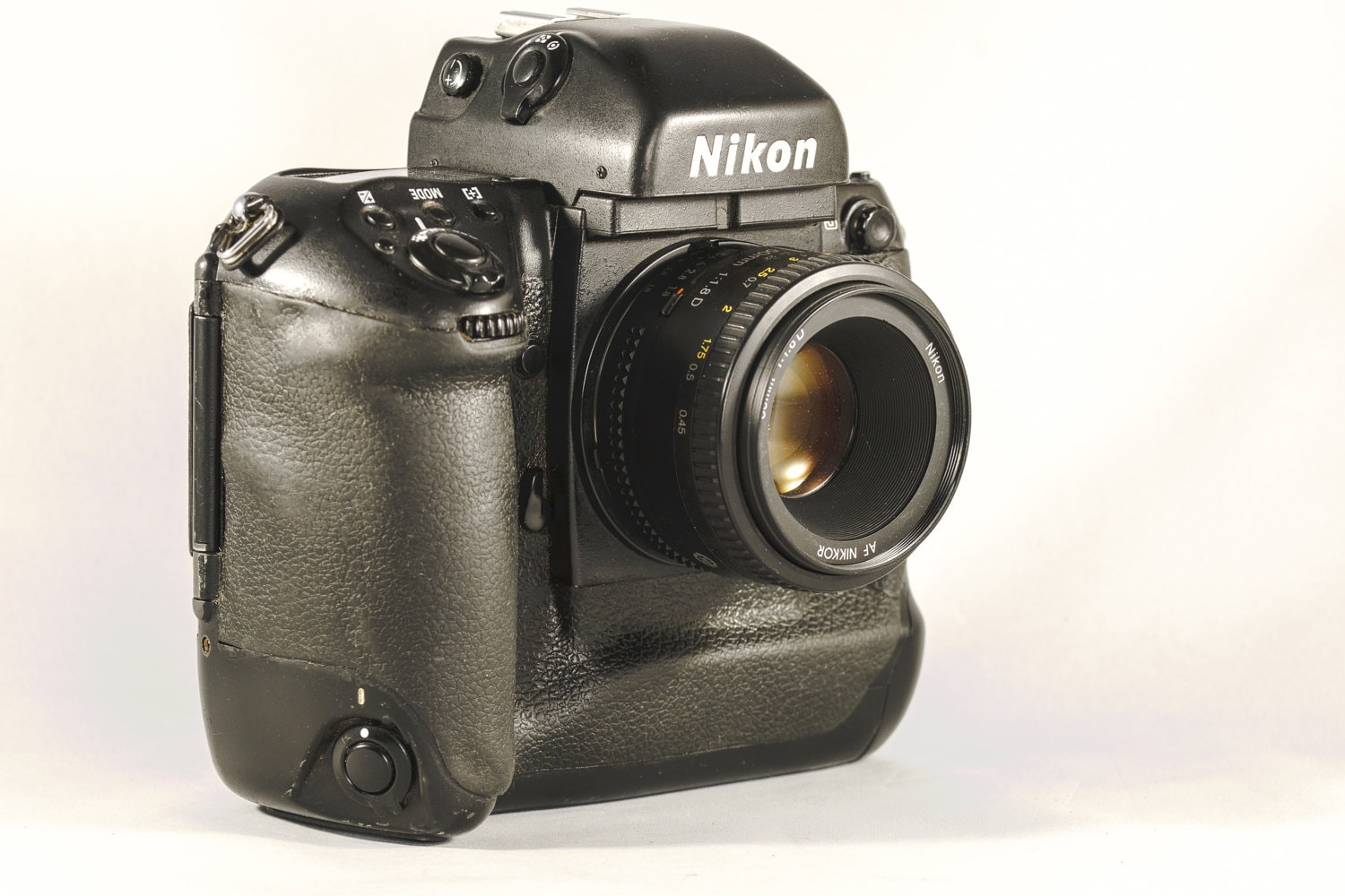 The F5 is powered by eight AA batteries. Using it with smaller AF-D lenses isn't as dramatic but is equally effective. Contemporary AF-S and VR lenses are fully compatible with the F5 as well. As a matter of fact, practically ALL Nikon lenses are compatible with F5