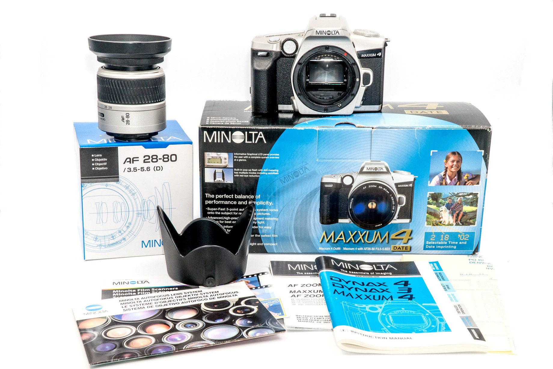 The Minolta Maxxum 4 (Dynax 4 in Europe and Dynax 3 in "in Asia Pacific countries") 35mm SLR camera was introduced in 1999.