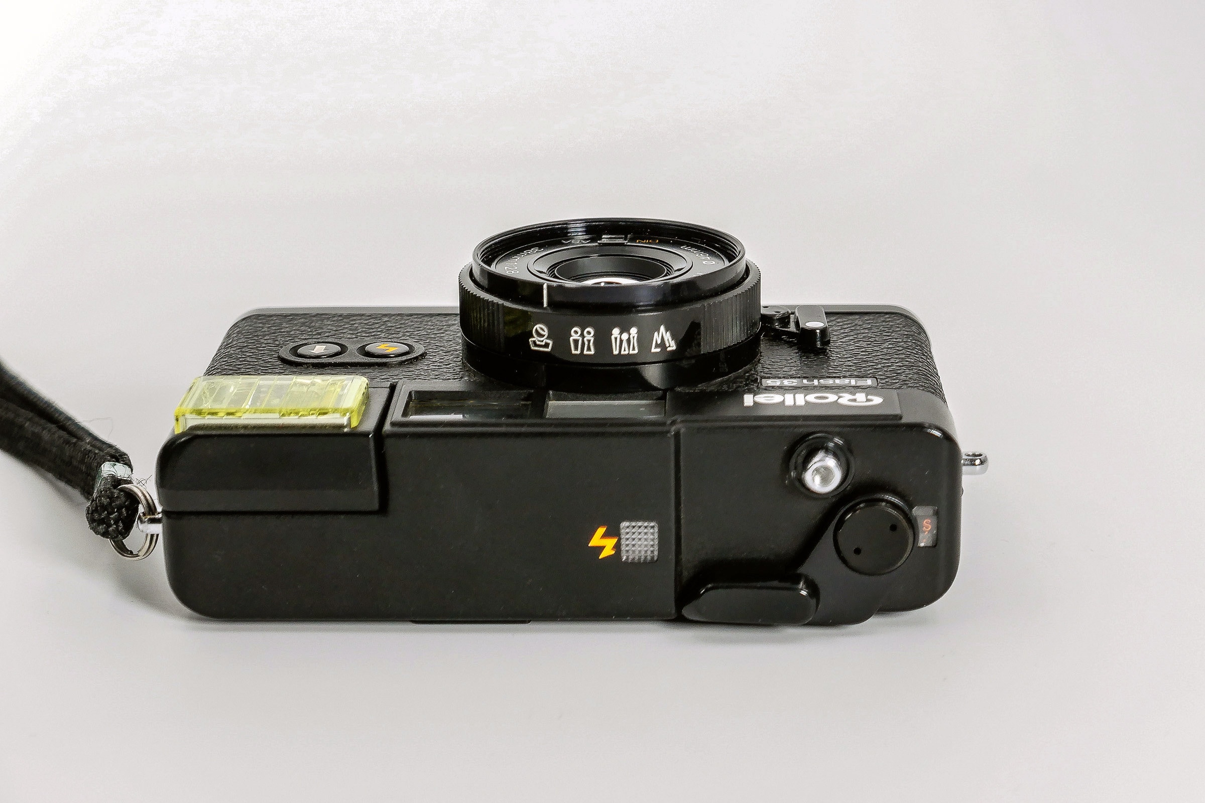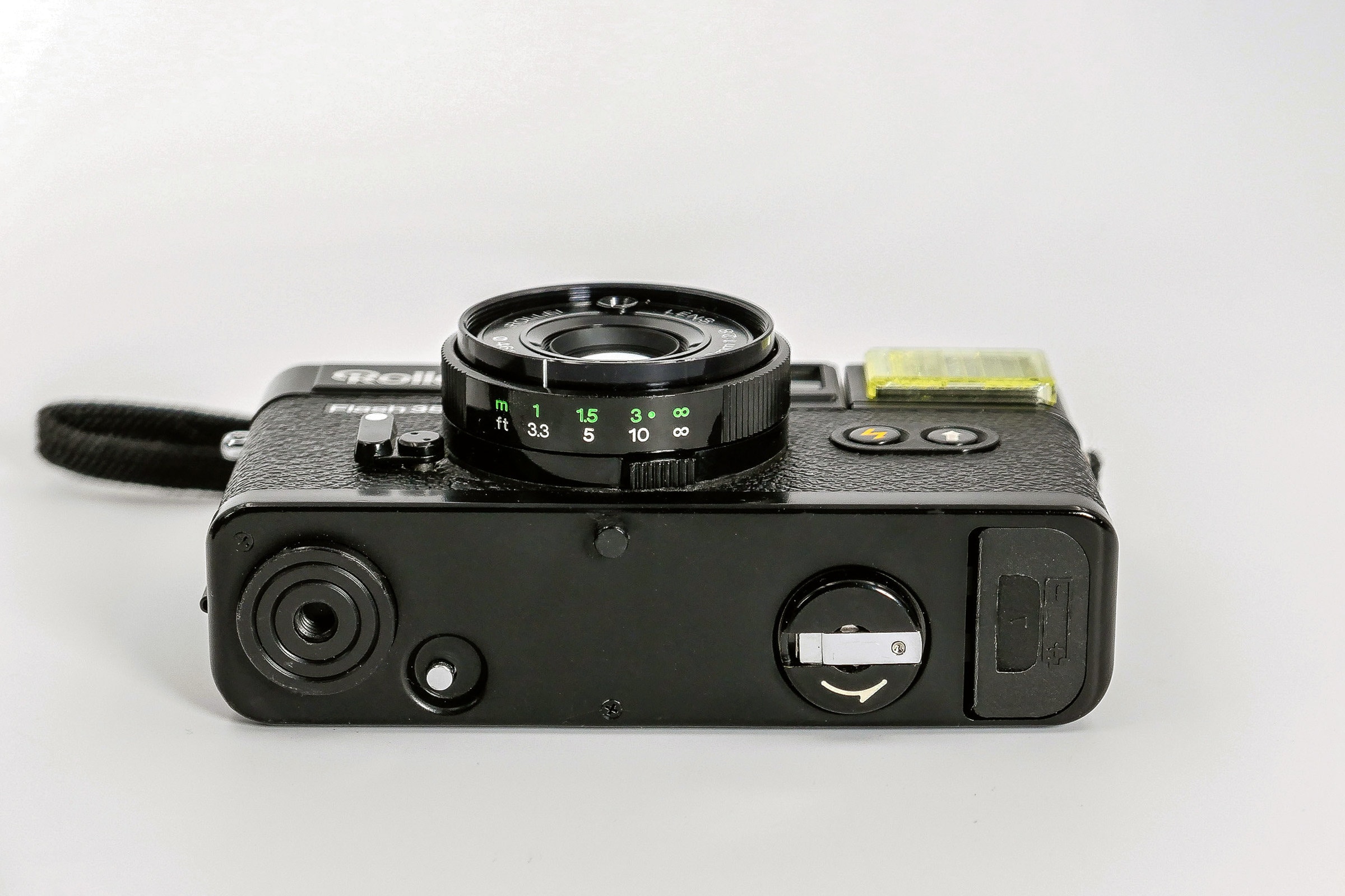 Rare and desirable The Rollei Flash 35 was made from 1980 to 1981. It uses a Rolleinon 38mm F/2.8 lens, that is quite sharp for a point-and-shoot camera. The fast maximum aperture of F/2.8 makes it suitable for low-light photography, especially with today's fast films.